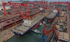 5月16日,中国船舶集团青岛北海造船有限公司为 CMA CGM法国达飞海运集团建造的5500TEU集装箱船5号、6号船同日出坞,全面进入码头...