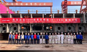1月2日,中国船舶集团有限公司旗下上海外高桥造船有限公司为台湾TS Line公司建造的7000TEU集装箱船系列第四艘船H1560以及为加拿...
