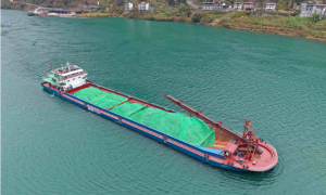 3月9日,在金沙江向家坝库区,6000吨级“甲醇—柴油”双燃料新能源货船——“川港005”满载着磷矿货物顺利启航,标志着该船正式投入载货运行...