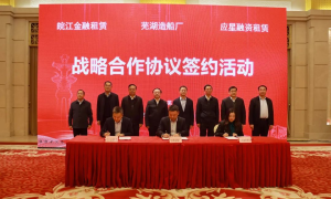 1月13日,芜湖造船厂与皖江金融租赁、应星融资租赁签署战略合作协议。 安徽省交通运输厅党组书记、厅长聂爱国,中共芜湖市委副书记、市人民政府市...