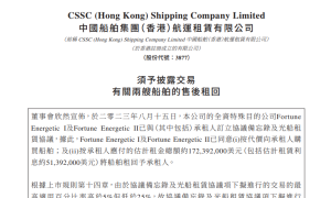 8月15日,中国船舶集团(香港)航运租赁有限公司发布公告,公司的全资特殊目的公司Fortune Energetic I及Fortune En...