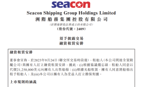 9月24日,洲际船务集团控股有限公司发布《须予披露交易融资租赁安排》公告。 公告披露,洲际船务于2023年9月24日,租船人Seacon Y...