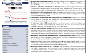 2025年1月31日 海岬型船舶 海岬型船舶市场上周表现不佳,波罗的海海岬型航线 (BCI) 5TC租金价格从周一的7,946美元稳步下跌,...