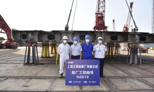 8月1日下午,中国船舶集团上海公司所属上海江南造船厂有限公司承建的120TEU河海直达集装船首制船定位分段举行“船东、船检、海事、 船厂四方...