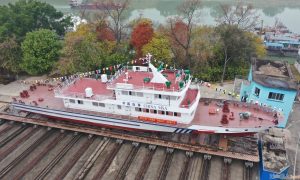7月29日上午,随着下水作业指令的下达,中国船舶集团广西公司所属桂船公司负责建造的“绿色珠江”工程3000DWT系列船中的3号船“达峰300...