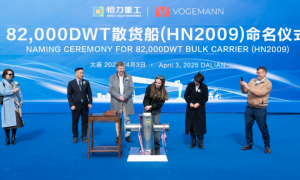 4月3日,恒力重工举行82000载重吨散货船(HN2009)命名仪式,正式拉开了二季度新造船舶集中交付的序幕。 恒力重工产业园1号舾装码头,...