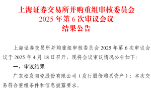 据松发股份4月12日公告,根据安排,上海证券交易所并购重组审核委员会定于4月18日召开2025年第6次并购重组审核委员会审议会议,审核松发股...