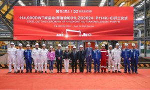 近日,恒力重工华光海运建造的第二艘环保成品油/原油轮在大连长兴岛开工。 该船长248.8米,型宽44米,结构吃水15.0米,载重吨达11.4...