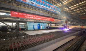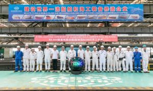 9月8日上午11点38分,舟山中远海运重工为交银金融租赁有限责任公司建造的第7艘6.36万吨散货船N1092项目在公司一号船体车间举行割板开...
