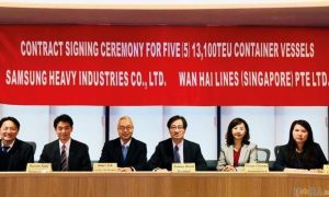 3月25日,中国台湾万海航运与韩国三星重工签署5艘13100TEU集装箱船合同,价值在5.69亿至7亿美元之间,计划在2024年开始交付。 ...