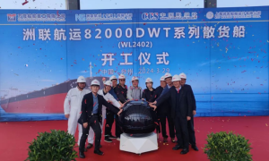 3月29日,由中国船级社(CCS)检验,万隆船舶重工有限公司为洲联航运(宁波)有限公司建造的82000DWT系列散货船项目WL2402/03...