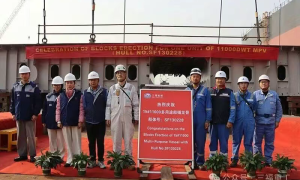 12月11日,三福船舶为德国船东建造的一艘11000DWT多用途船在公司3#船台举行上船台合拢仪式。 该船总长149.95米,垂线间长143...