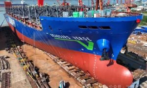 10月30日下午,泰州三福船舶工程有限公司为德国船东建造的一艘3500TEU双燃料(LNG+MGO)集装箱船在该公司4#船台顺利下水。 该船...