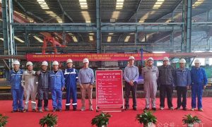 12月25日,三福船舶为德国船东建造的改型12500DWT多用途船首制船在1#船台举行铺龙骨仪式。 该船总长147.00米,垂线间长140....
