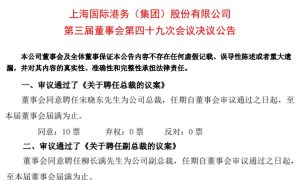 10月14日,上海国际港务(集团)股份有限公司(简称“上港集团”)发布《第三届董事会第四十九次会议决议公告》。 公告披露,上港集团召开了董事...