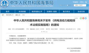 8月29日,中国海事局发布了《纯电池动力船舶技术法规实施指南》(船舶技术法规实施指南2023年第1号),自发布之日起实施。 中国海事局表示,...