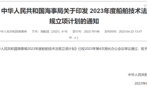 近日,中国海事局印发《2023年度船舶技术法规立项计划》的通知。 根据通知,《中华人民共和国海事局2023年度船舶技术法规立项计划》已经20...