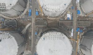 3月27日,由中国海油自主研发设计的6座全球最大容积LNG(液化天然气)储罐接收站工程——浙江LNG三期项目接收站工程在宁波市北仑区举行奠基...