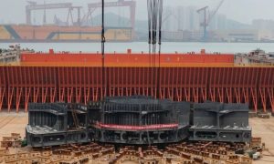 近日,由我国自主设计建造的亚洲首艘圆筒型FPSO(浮式生产储卸油装置)流花11-1/4-1油田二次开发项目圆筒型FPSO船体分段合拢及上部模...