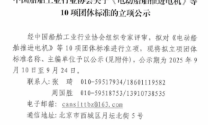 近日,中国船舶工业行业协会发布了关于《电动船舶推进电机》等10项团体标准的立项公示。 具体如下: 来源:中国船舶工业行业协会