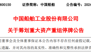 1月24日晚间,中国船舶、中国重工发布公告称,中国船舶换股吸收合并中国重工重组方案已经过双方董事会审议通过、并公告重组报告书草案。 2024...
