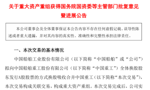 1月7日,中国船舶工业股份有限公司(以下简称“中国船舶”)发布《关于重大资产重组获得国务院国资委等主管部门批复意见暨进展公告》。 公告披露,...