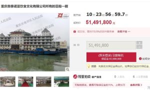 1月22日10时至1月23日10时,重庆森泰诺亚饮食文化有限公司(重庆森泰诺亚)破产管理人将于在淘宝网阿里拍卖破产强清平台,对所有的趸船一艘...