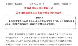 10月23日晚间,中海油服(601808)披露签订重大合同。公告显示,近期,中海油服海外市场取得重大突破,与中东地区一流国际石油公司签署多份...