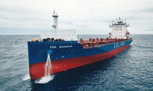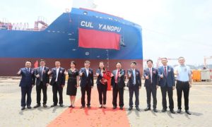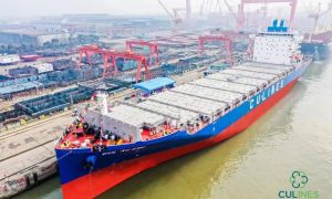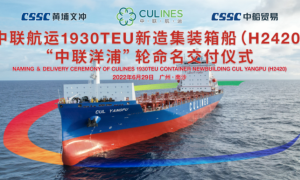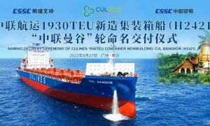 3月9日上午,扬子江集团新扬子造船为中联航运建造的第二艘2400TEU集装箱船“CUL KLANG”(中联巴生)轮,解缆离开船厂码头,交付投...