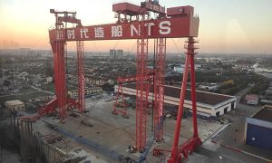 据中船九院消息,近日,由中船九院负责设计、建造的江苏新时代造船有限公司800吨门式起重机提升圆满完成,此次提升共历时12天,采用双塔架液压同...