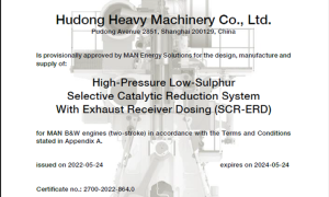 中船动力集团自主研发HP-SCR-ERD系统通过曼恩(MAN)正式认证。 中国船舶下属中船动力集团自主研发的新一代船用高压选择性催化还原脱硝...