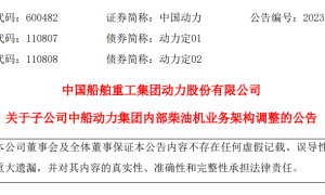 12月15日,中国船舶重工集团动力股份有限公司发布《关于子公司中船动力集团内部柴油机业务架构调整的公告》。 公告披露,中国动力子公司中船动力...