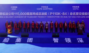1月7日,中船大连造船大船天津为希腊CAPE SHIPPING公司建造的首制11.5万吨成品油船——“开普奥林巴斯”号提前合同期83天命名交...