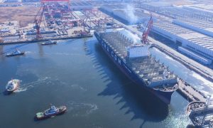 2月2日,中船大连造船大船天津为法国达飞集团建造的甲醇双燃料15000TEU集装箱船C16K-17号船正式启动海上试航。 据悉,此次试航主要...