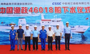 10月22日上午,由中国船舶集团广西造船有限公司所属中船桂江造船有限公司承建的海南省海洋和渔业监察总队两艘500吨级执法船“中国渔政4601...