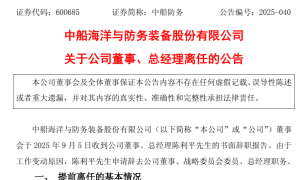 9月6日,中船海洋与防务装备股份有限公司(以下简称“中船防务”或“公司”)发布《关于公司董事、总经理离任》的公告。 公告披露,中船防务董事会...