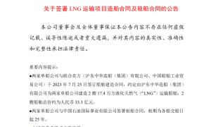 7月25日,中远海运能源运输股份有限公司发布《关于签署 LNG 运输项目造船合同及租船合同的公告》。 公告披露,中远海能间接持股 70.71...