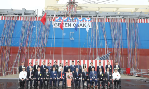6月25日,中远海运特运72000吨系列多用途船“GREEN OSAKA”轮在日本大岛船厂命名交付。 “GREEN OSAKA”轮总长约21...