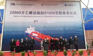 1月7日上午,南通中集太平洋海洋工程有限公司(以下简称“CIMC SOE”)在扬州新大洋造船码头为一艘新型22000立方米 LEG船“Gas...