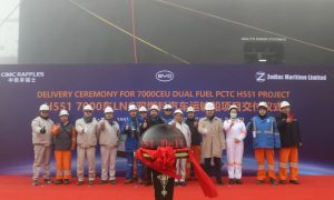 近日,中集集团旗下中集来福士为Zodiac Maritime建造的首艘7000车位汽车运输船,在山东龙口基地交付离港。该船命名为“BYD E...