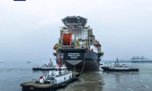 12月24日,由烟台中集来福士海洋科技集团(中集来福士)自主设计建造的“博强3060”风电安装船在烟台基地码头命名交付。 该船作为目前国内最...