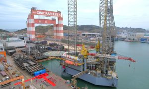 近日,中集海工资产成员企业天津凯胜海洋工程设备租赁有限公司运营管理的300尺自升平台“湾钻3号”,在烟台中集来福士船厂举行交付运营仪式,该平...