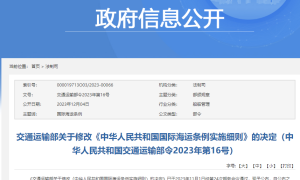 12月4日,交通运输部发布关于修改《中华人民共和国国际海运条例实施细则》的决定(中华人民共和国交通运输部令2023年第16号)。 交通运输部...