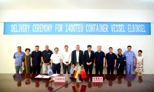 8月5日,京鲁船业为德国United Shipping Companies公司建造的1400TEU集装箱船“ELBINSEL”轮顺利举行交船...