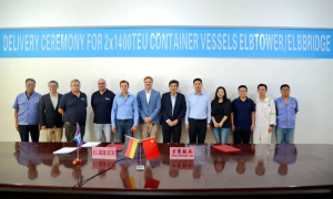 9月9日,京鲁船业为德国United Shipping Companies公司建造的1400TEU集装箱船的“ELBTOWER”轮及“ELB...