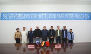 11月22日,京鲁船业为德国United Shipping Companies公司建造的1400TEU集装箱船“PANDA 005”轮顺利交...