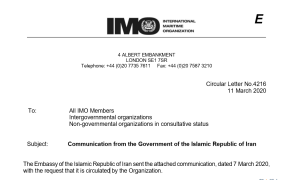 3月11日,IMO发布Circular Letter No.4216,该通函件转发了IMO秘书处收到的伊朗政府3月7日发送的信函,并应信函要...