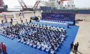 4月18日, 由振华重工为中交海峰风电建造的4000吨全回转起重船、1800吨自航自升式风电安装平台、2500吨自航自升式风电安装平台项目吉...