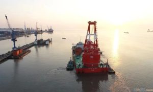 7月17日,随着艏部最后一个艏楼分段吊装就位,由振华重工为江苏龙圣海工建造的4000吨全回转起重船项目顺利实现全船贯通。 江苏龙圣海工400...