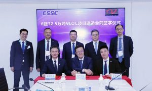 12月2日,中船北海造船联合中船贸易与韦立国际集团在上海举行六艘32.5万载重吨WINNINGMAX型超大型矿砂船建造合同签约仪式。韦立国际...